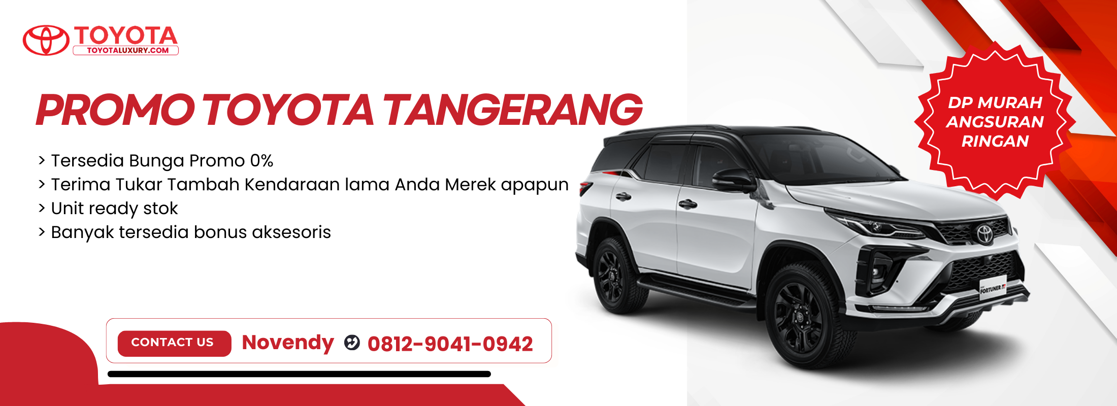 Promo Toyota Tangerang DP dan Angsuran Ringan. Banyak keuntungan yang diperoleh dari promo Toyota, seperti paket kredit ringan berupa uang muka dan angsuran yang rendah. Untuk unit mobil ready stock berbagai merek dan pilihan warna. Mobil bukan sekadar alat transportasi, tetapi... selengkapnya